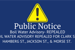 Boil Water Advisory Repealed Published on February 10, 2026 Boil Water Advisory Repealed Clark St., Morse St. Jackson St., & Hamberg St Tagged as: , Public Notices